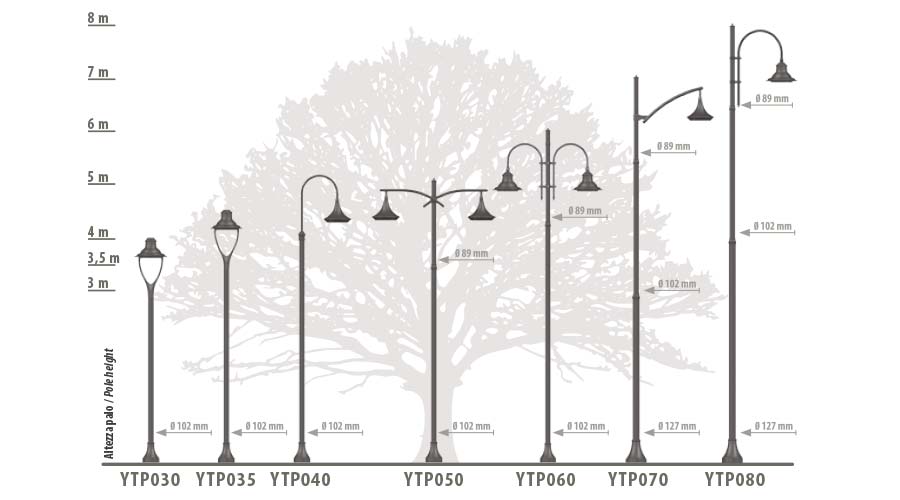 The proposed compositions are purely indicative: brackets, pole arms and lighting fixtures of your choice