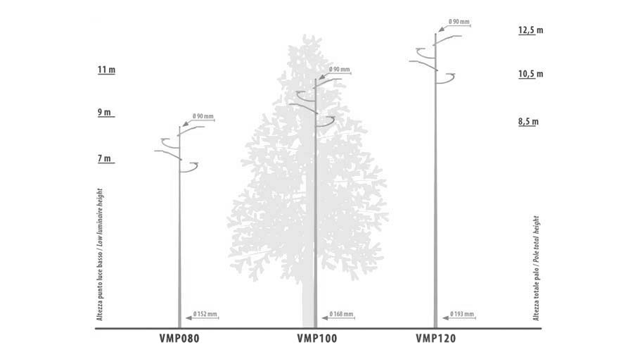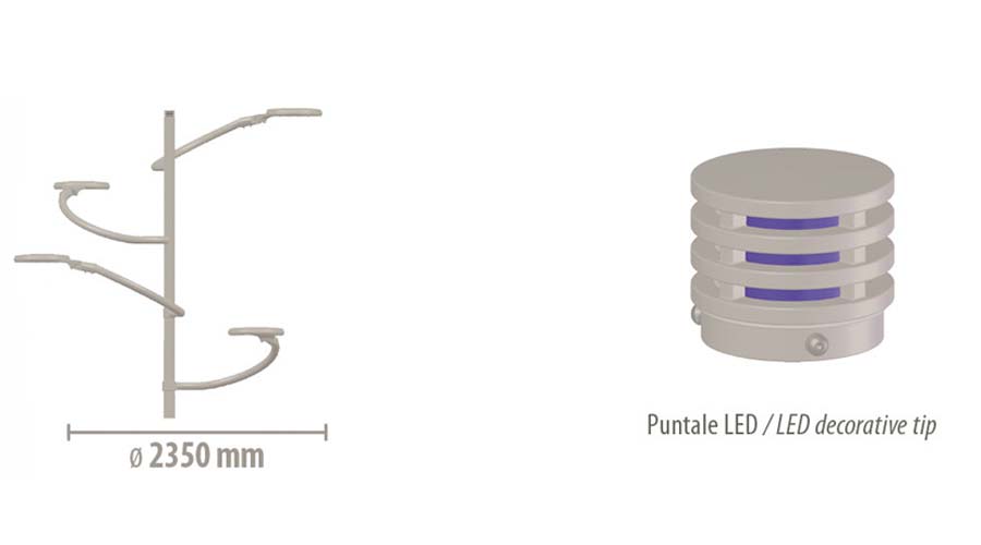 Vesta Medusa est le poteau d’éclairage urbain au design hélicoïdal, en acier conique laminé sans soudure.