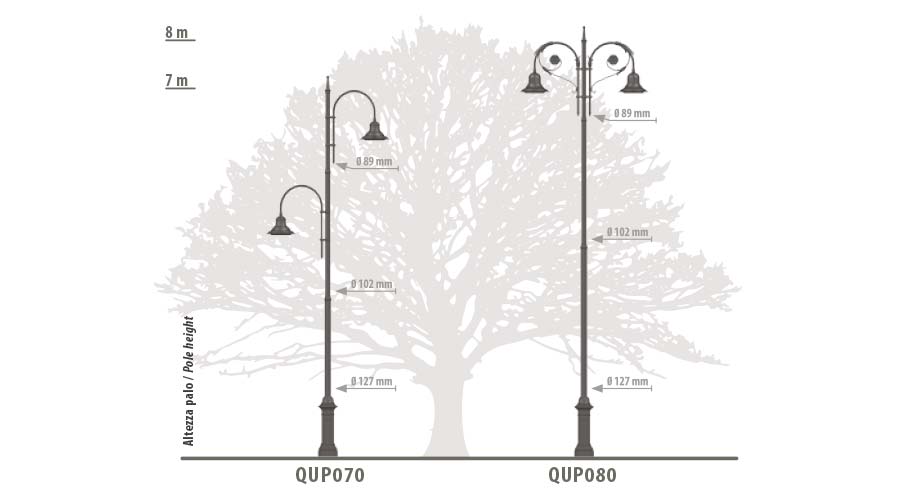 Qu – это линейка чугунно-стальных опор с прямоугольным основанием, которая особенно подходит для установки кронштейнов и фонарей в классическом стиле.